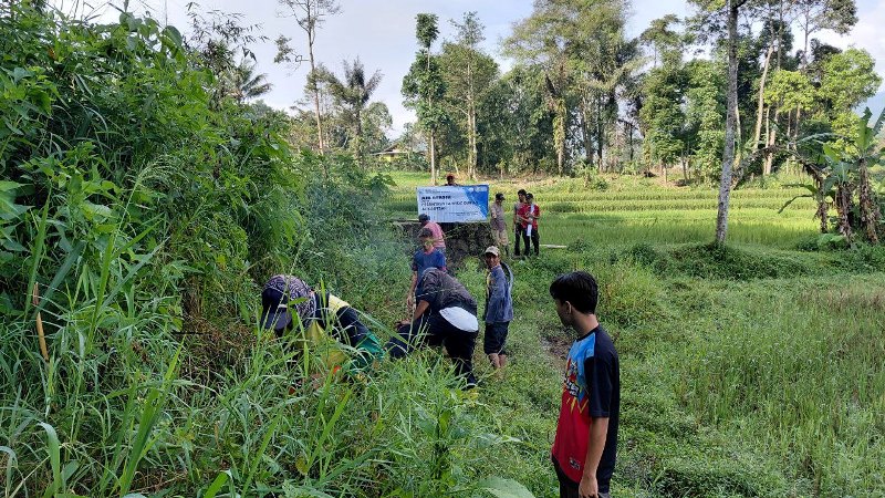 Dibantu para pengurus, santri, dan warga lingkungan Ponpes, pemasangan pipanisasi tersebut mengikuti jalur irigasi yang telah ada, sekaligus melakukan pembersihan saluran irigasi di beberapa lokasi yang terdapat tumpukan sampah yang bisa menghambat salurannya.